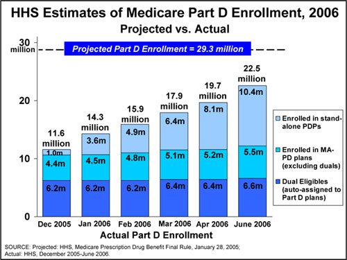...As the Bush Administration prepared for the opening of enrollment in Medicare Part D, the Congressional Budget Office predicted 29 million seniors would enroll for coverage in 2006.1