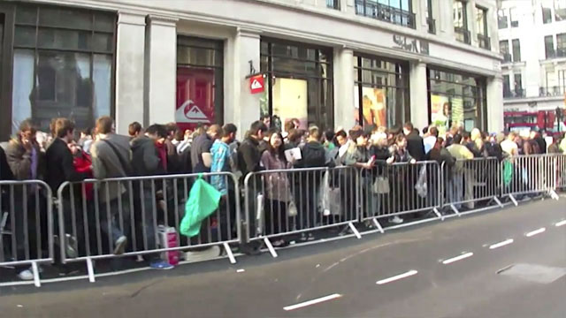 I've posted 4 photos. Two of these are (according to the White House Blog) people lining up to enroll for health insurance coverage. The other two are from the launch of Apple stores (update: actually it turns out they're both from the launch of the iPad 2 back in 2011, but you get my point). Without visiting the WH blog or checking the file names first, can you tell which is which?
