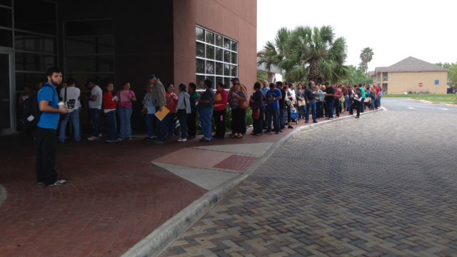 The line started forming at 5 a.m. in front of an enrollment center in Miami -- where trained workers have signed up 25,000 of their fellow Floridians since November. It was standing-room-only at a center in Houston yesterday.