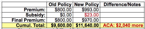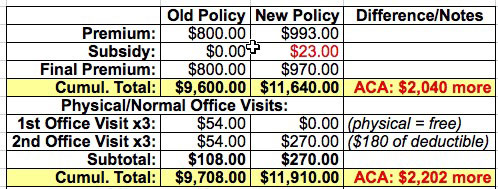 This factor cannot be repeated enough: Even assuming the ACA had never been passed, our premiums for the old policy would almost certainly have gone up by around $1,000 per year anyway...meaning that the table above would have ended up being a wash.