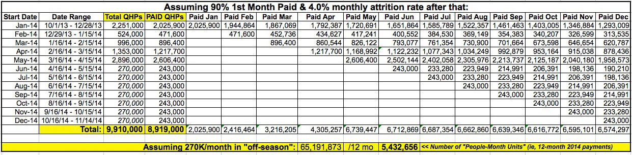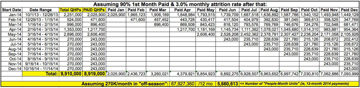 Here's the thing, though: Even if that's the case, the November 14th currently enrolled/paying tally should still end up being around 7.1 million people using a 3% average attrition rate...still 100K above the "magic" 7 million figure:
