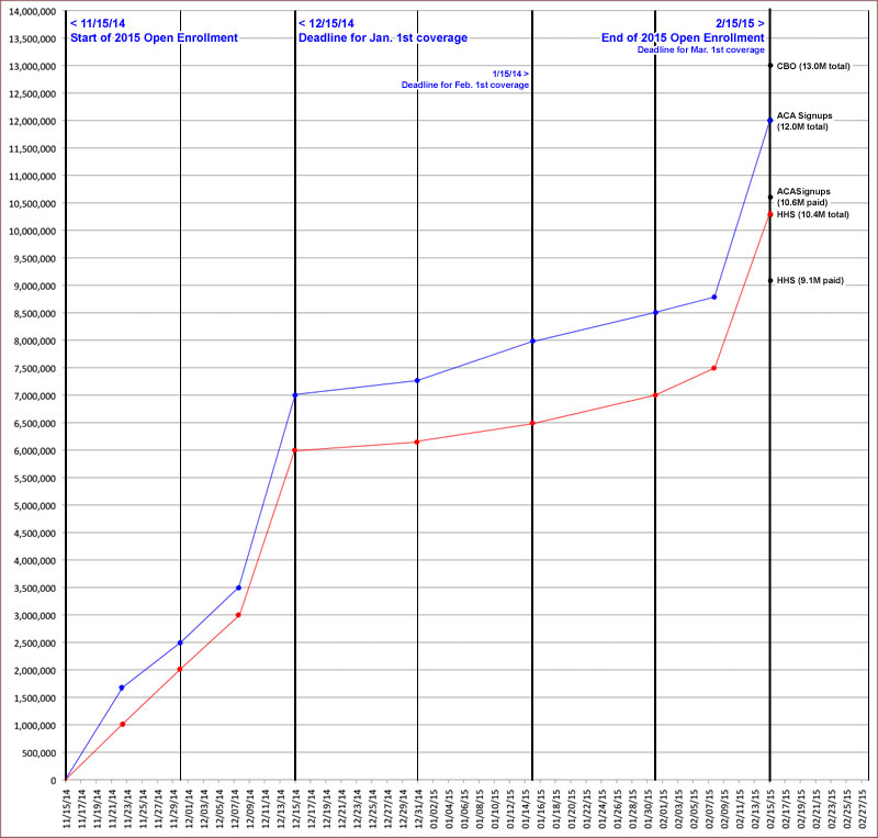Assuming that's the case, how many people will HC.gov specifically need to enroll in order to hit my personal 12.0 million QHP total by 2/15/15? Easy, around 9 million.