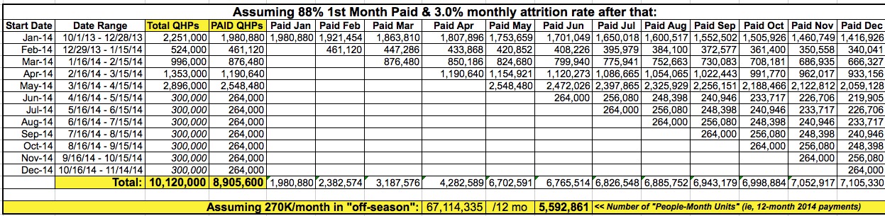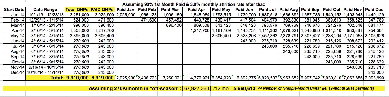 Here's the attrition estimate chart that I had been going with prior to the 9/18 announcement, which assumed a 90% payment rate, 9,000 people enrolling per day and about 3% dropping coverage per month: