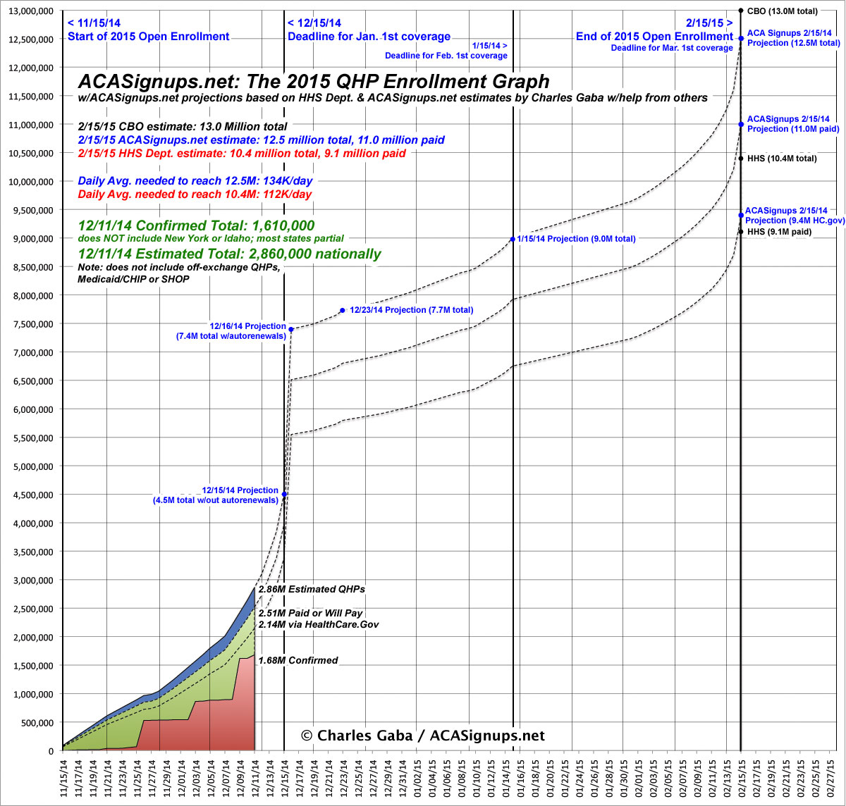 UPDATED: REVISED QHP PROJECTIONS: 7.9M by 12/23; 9.0M by 1/15; 12.5M by 2/15/15