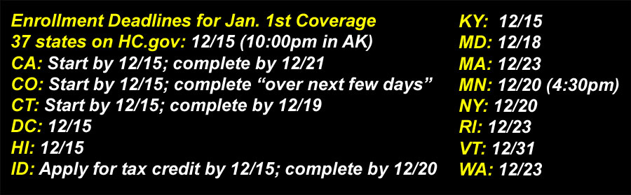 Well, 4 of them (MD, MA, RI & WA) had later deadlines for January coverage all along: Maryland on 12/18 (Thursday) and the other 3 on 12/23 (next Tuesday).