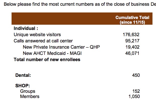 To put this in context, when you add in the renewals CT has already reached 78% of their goal (roughly 110,000 QHP enrollments) already.