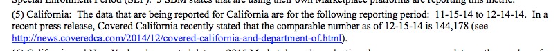 See that second line? The HC.gov data runs from 11/15 - 12/15...but the state-based data (with the exception of California) only runs through December 13th, not the 15th.