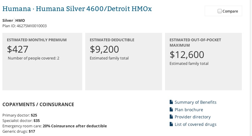 Their kids qualify for the CHIP program. For the 2 adults, they decide to go for a Silver Humana HMO with an $1,800 deductible.