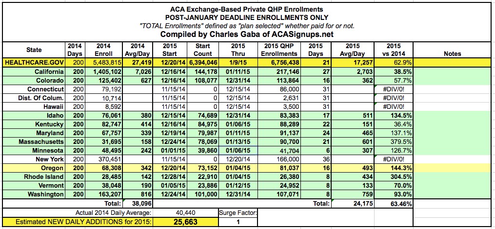 Based on that average, assuming that there isn't any surge of any sort going forward--that is, no jump over the past few days for February coverage, no 33% average jump for the 2nd "quiet period" and not even a hint of a surge over the final 5 days of the enrollment period--the total would end up roughly: