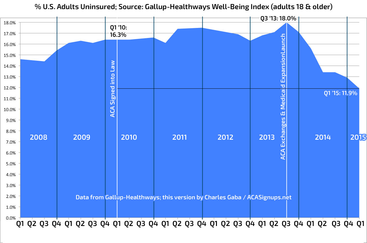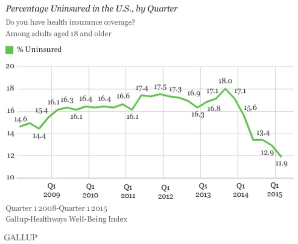 UPDATED: GALLUP: Uninsured rate drops to 11.9% as of end of March 2015
