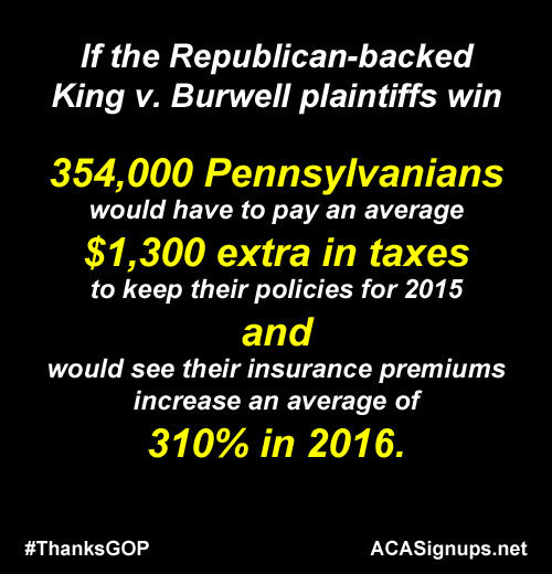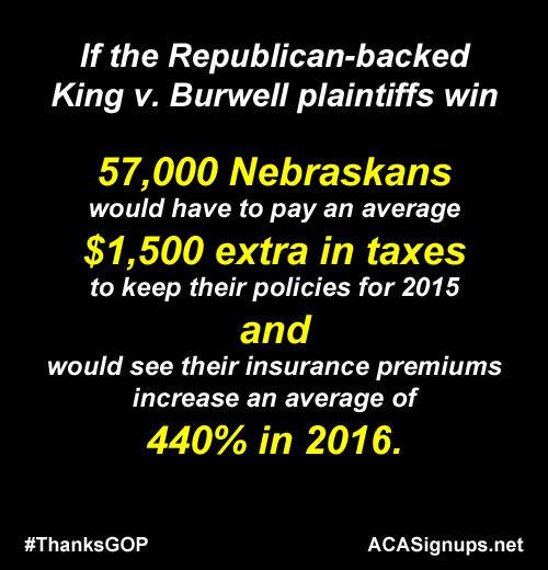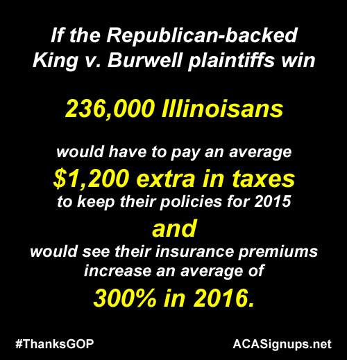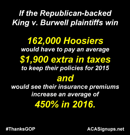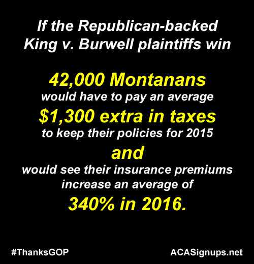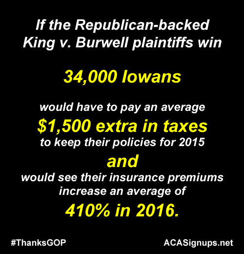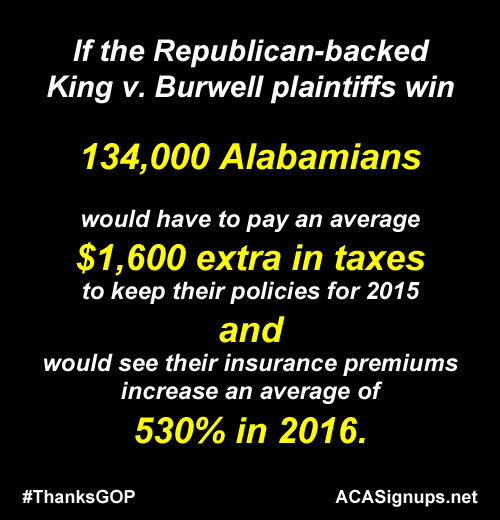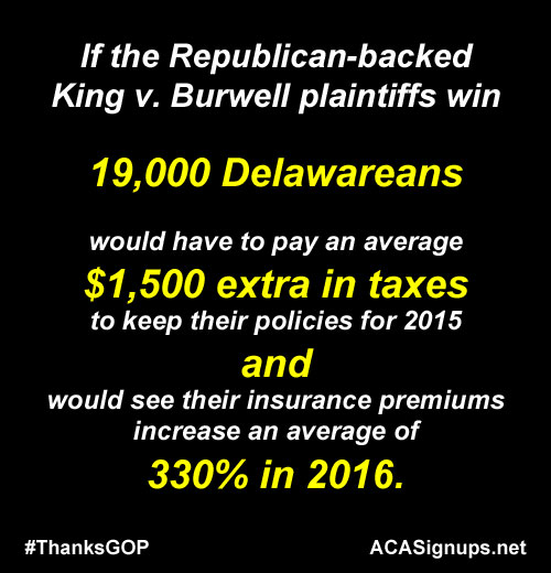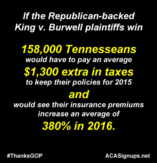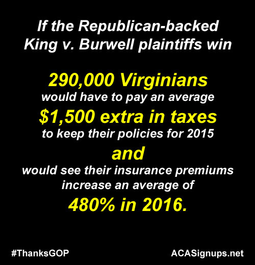 A couple of days ago I noted that the primary damage (but by no means the only damage) of the Supreme Court ruling for the plaintiffs in King v. Burwell would be for appx. 6.5 million people to have to shell out an average of over $1,600 in extra taxes this year to keep their current healthcare policy through the end of 2015, plus a likely average 493% hike in premium rates if they want to keep the same policies in 2016.