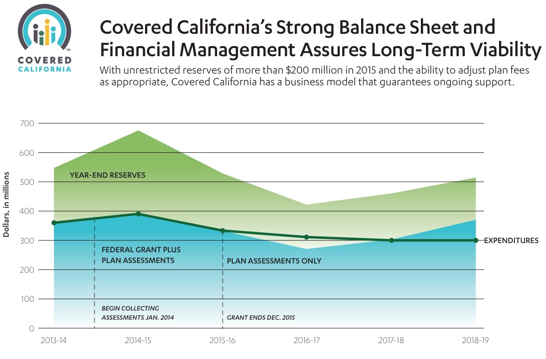 Next, as I noted above, according to CoveredCA's latest projections, after a slight dip next year, they should have a stable and viable budget/funding situation going forward, which means that they, at least, will be staying right where they are: