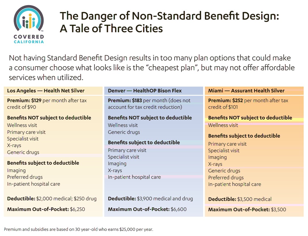 Well, as it turns out, this is far less of an issue in California, because they've wisely placed extra limitations on some of the variables; as they say on another slide, "By offering fewer, but standardized products, Covered California offers better options, creating more value for consumers."