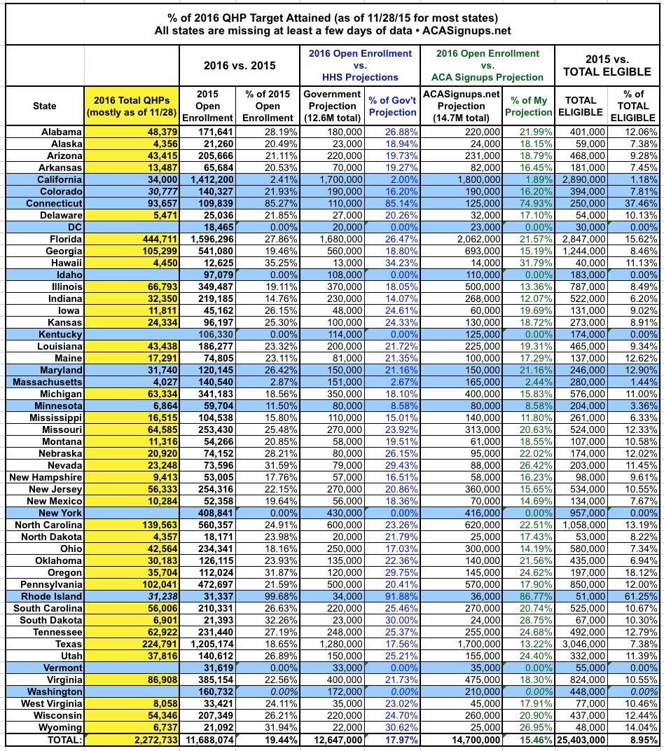 I launched the "State by State" chart feature towards the end of the 2015 Open Enrollment period last time around, and it proved to be pretty popular, so I've brought it back this year, starting today.