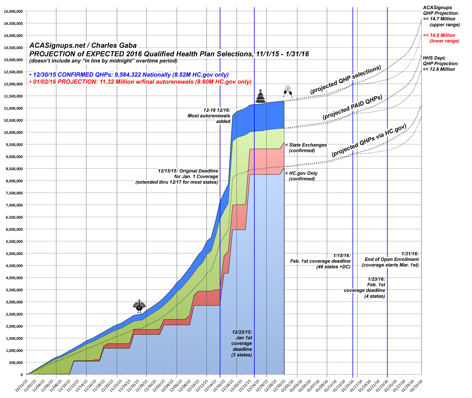 LAST YEAR, the official number of QHP Selections reported through the end of Open Enrollment (2/22/15) was 11,688,074...while the official number of effectuated enrollees as of 3/31/15 (just 37 days later) was only 10,187,197.