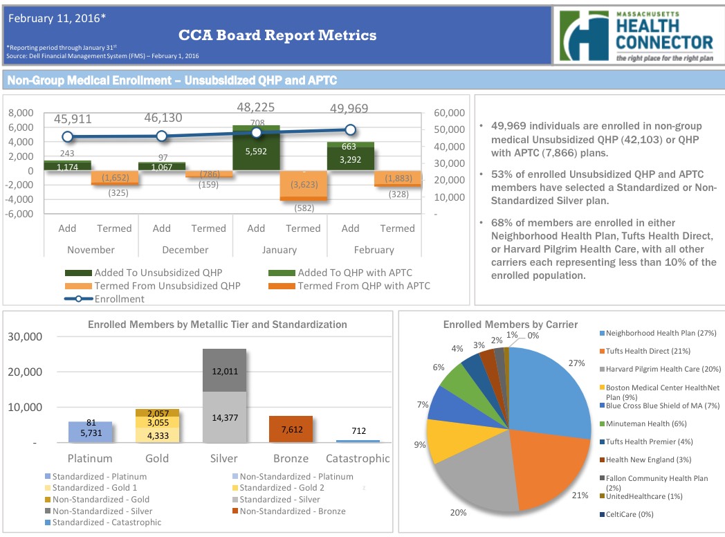 As of this morning, there were still 4 states with some 2016 Open Enrollment data missing: Idaho, Massachusetts, New York and Vermont. The Massachusetts exchange board held their monthly meeting today, so I can cross one more state off the list: