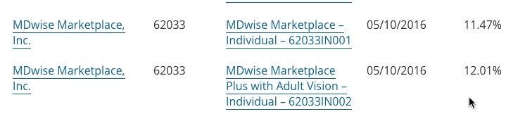 Without MDwise included, the average of the other 5 carriers comes in at 19.25%. However, MDwise is only (only is relative, I realize) requesting an 11.5% average hike, so any additional enrollees from them would bring that average down somewhat. The problem is figuring out how many current enrollees MDwise has: