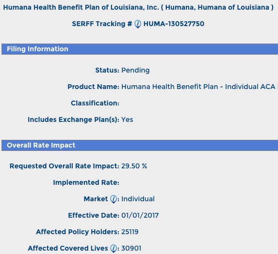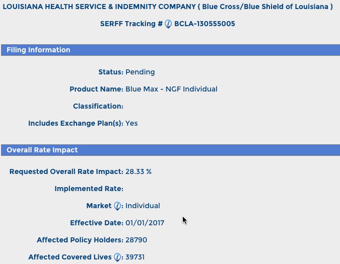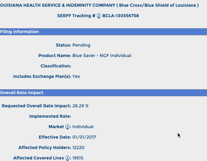 With this in mind, here's how things stack up in Louisiana for the ACA-compliant individual risk pool rate hike requests: