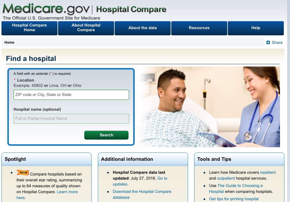 Just moments ago, the CMS division of HHS announced a complete overhaul/update to their already-existing searchable Hospital Compare database, which appears to be basically a Yelp for hospitals. From today's CMS blog post: