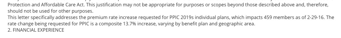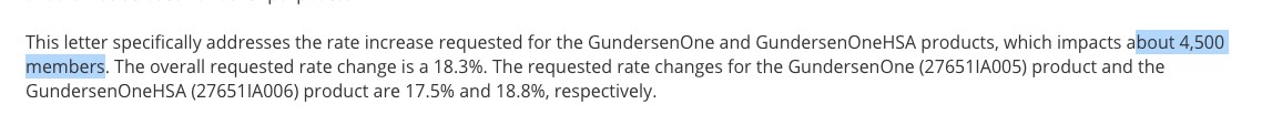 Fortunately, if you eyeball their average rate hikes, it looks to me as though they should mostly cancel each other out: 5.4%, 9.1% and 10.5% vs. 23.7%, 32.4% and 36.4%...if you assume a straight average (which obviously is unlikely, but what else can I do here?), they average out to right around the same 20.0% that the known carriers average.