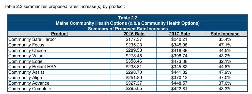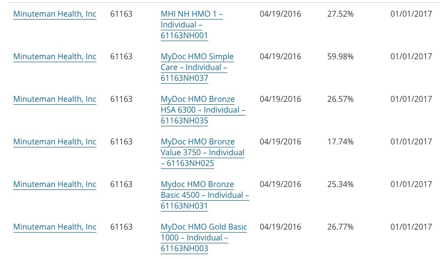 Finally, for Minuteman Health, the average request was also questionable, since there are 6 different filings ranging from 25-60%. Without knowing the breakdown between the 6, I had to run a simple average to get 30.7%.