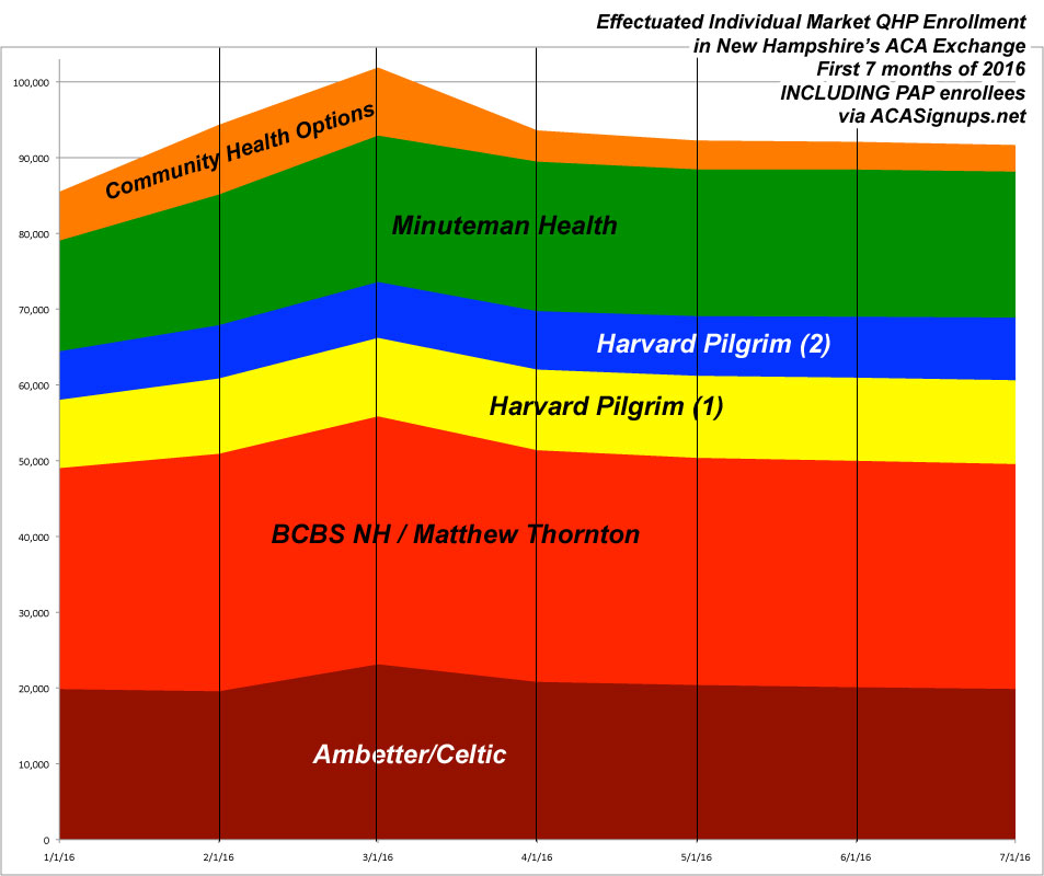 NH is one of the few states (and the only state on the federal exchange) which issues regular reports about the exact number of people enrolled in exchange-based policies each month. They even break this number out by metal level and carrier, which is very nice for tracking trends.