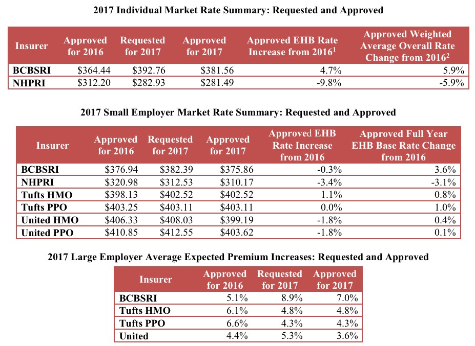 Well, nearly 3 months later, the RI Insurance Commissioner has weighed in with even more good news: Rates will be going up even less than that in 2017: