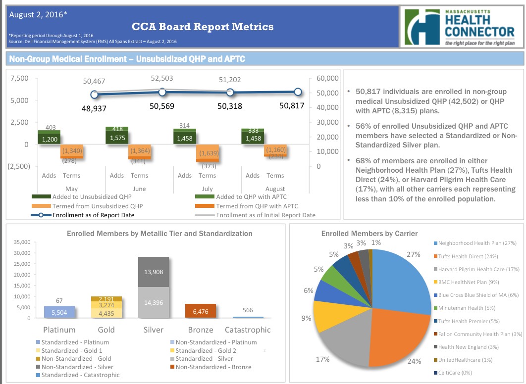 The Massachusetts Health Connector has posted their latest monthly enrollment report (through the end of July), and the news is good. As I note every month: