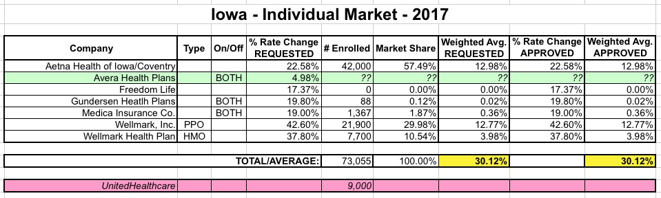 Iowa: *Approved* 2017 avg. rate hikes: 30.1% (+ some rare *transitional* plan data)