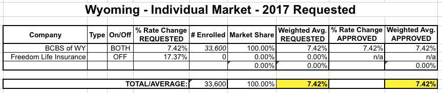 Last week I noted that with 41 states accounted for and the 2017 Open Enrollment Period quickly bearing down on everyone, it was time to pull the plug on my 2017 Average Rate Hike project and move on. I had come up with an overall national weighted unsubsidized average rate increase of around 25% for ACA-compliant individual market plans.