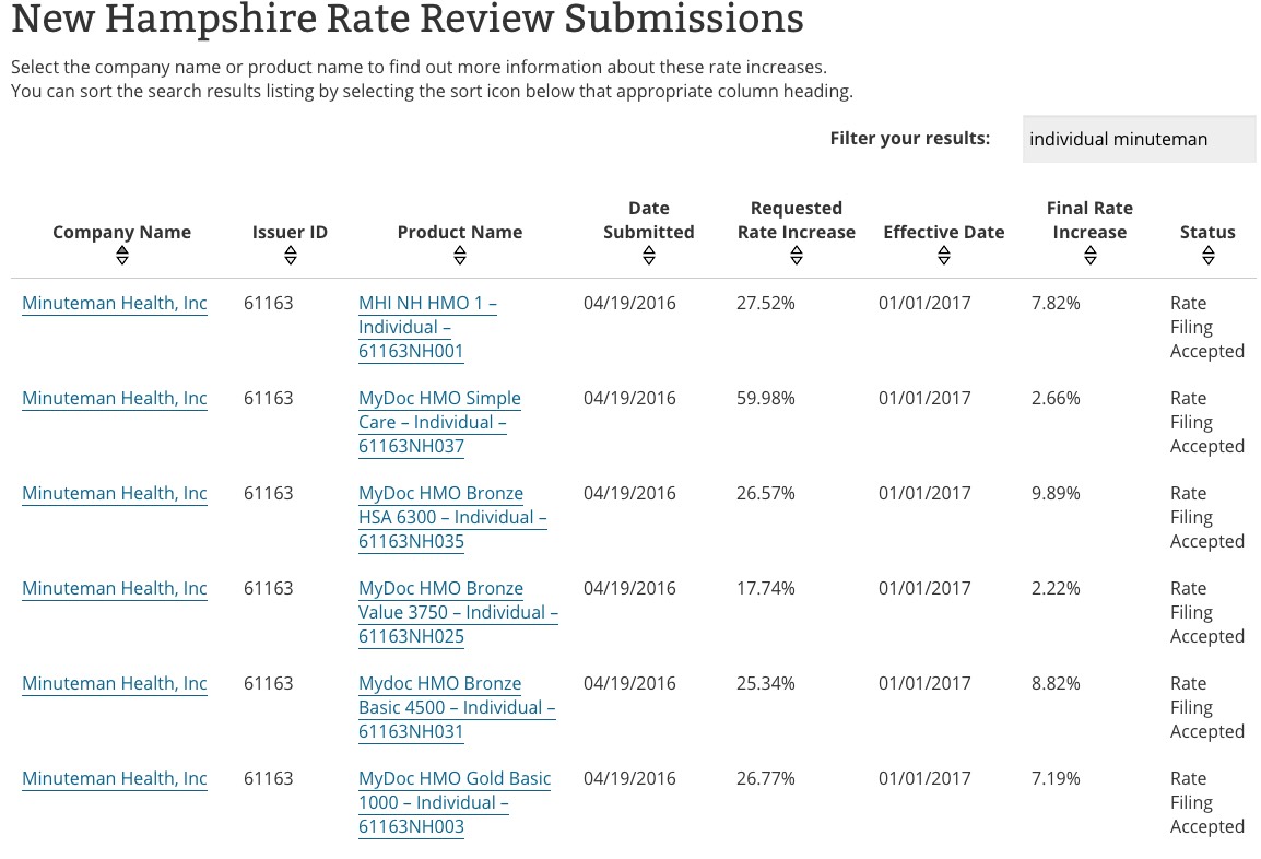 Not only is it rare to see an increase reduction of this magnitued this year, it's even more noteworthy since Minuteman Health also happens to be one of the few remaining ACA-created Co-Ops. Not sure what's going on here, but it's welcome news for NH residents.