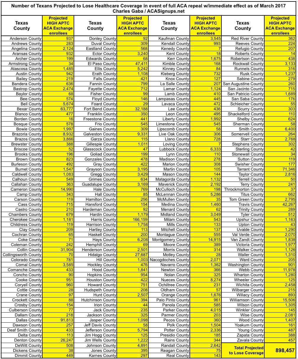 Texas: Here's the ~898,000 residents who could lose coverage...BY COUNTY.