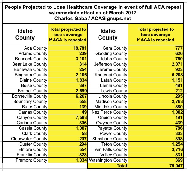 Idaho: Here's the ~75,000 residents who could lose coverage, by county