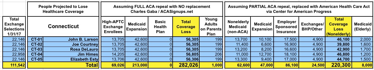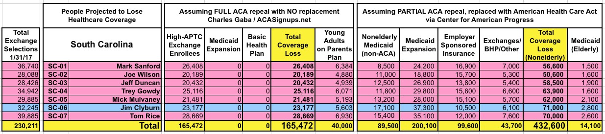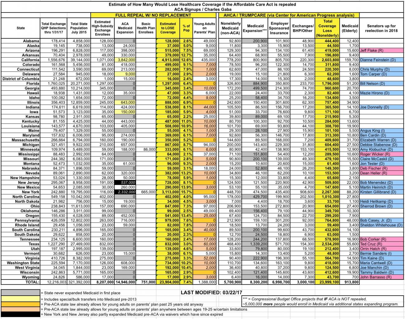 UPDATE: If you scroll all the way to the bottom, I've added a completely updated state/national-level table as well, reflecting both the "clean repeal" and Trumpcare scenarios.