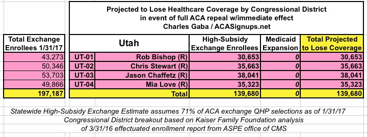 UPDATE 3/15/17: CMS has released the official 2017 Open Enrollment Report, which includes the official ACA exchange policy selection numbers as of 1/31/17, along with related demographic information. I've started the process of revising all 50 states with updated data, but this will take some time to complete. It's important to understand that most counties/congressional districts won't change by much, but I'd still prefer to have the data as up to date and accurate as possible.