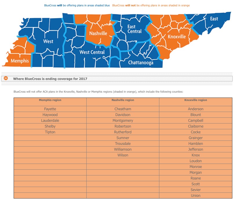 Tennessee: Here's the OFF-exchange options in those 16 counties