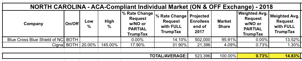 Put another way: The non-Trump sabotage rate increase for BCBSNC would be...0%. Flat. Zilch.