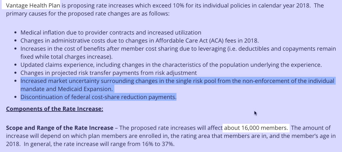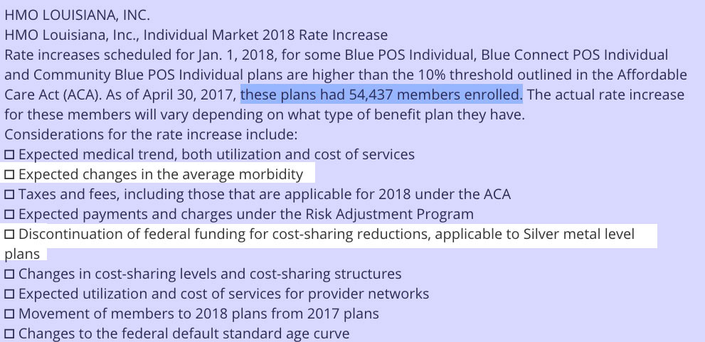2018 Rate Hikes: Louisiana: 7.2% if CSR payments made, 21.4% if they aren't