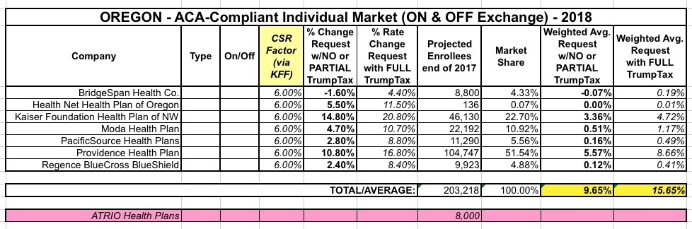 It's worth noting that Oregon's proposed rate changes have been approved for 2018 and reflect a state-level reinsurance program similar to those in Alaska and Minnesota: