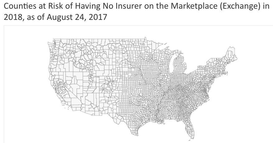 UPDATE 8/24/17: OK, I haven't kept this entry up to date in over two months, but it appears that in the end, every single county in America will indeed have at least one ACA exchange carrier after all: