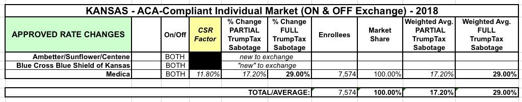 As a result, the "official" unsubsidized rate hike for Kansas boils down to Medica alone, even though they only hold a small portion of Kansas' total individual market: