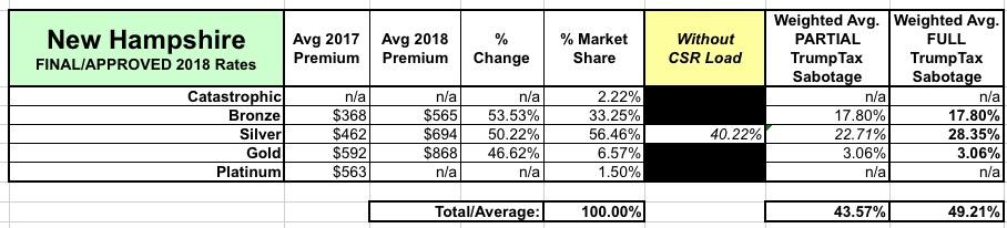 New Hampshire: Approved (?) unsubsidized rate hikes: ~52%; 5.2 pts due to CSRs (?)