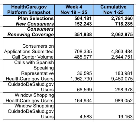UPDATE: Week Four: Nailed it; 500K HC.gov QHP selections due to Thanksgiving Weekend