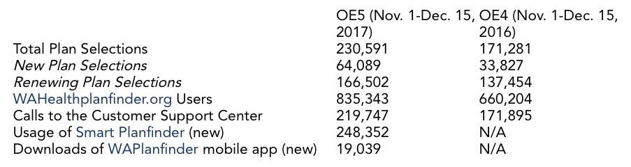 “We are very pleased with the early results and continue to work with people still seeking coverage,” said Pam MacEwan, CEO of the Washington Health Benefit Exchange. “For anyone who waited, there is a little less than one month left before open enrollment ends. Those who want 2018 coverage need to finalize their health and dental plan selections by the Jan. 15 deadline.”
