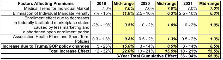 (Note: I've slightly restructured the table to include the mid-point of each range estimate, as well as to break out the portion of the increase which would be due to Trump/GOP sabotage efforts instead of normal medical inflation/etc):
