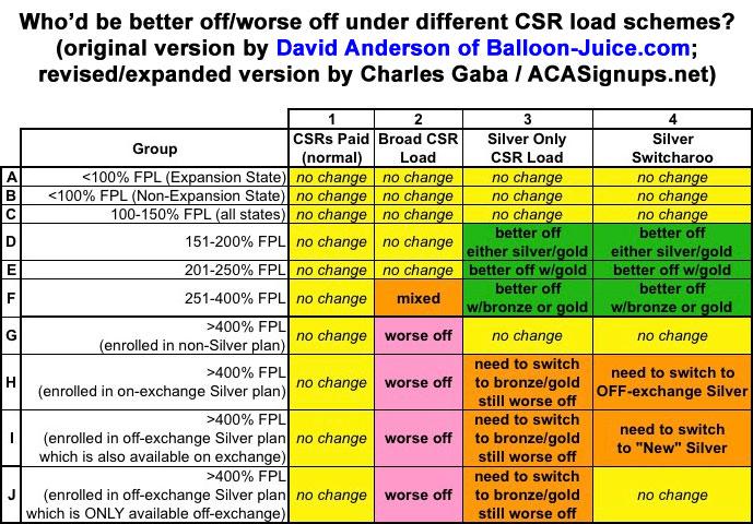 For instance: The "ACA 2.0" bill proposed by Democrats does include CSR funding...but it also includes beefing up the subsidy formula and extending subsidies to those earning >400% FPL. That's a critical detail. Beefing up the subsidy cancels out the downside of funding CSRs while maintaining the upside.