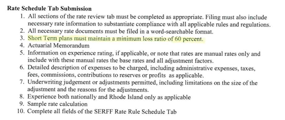 - Finally, and most interestingly: It sounds like the Urban Institute analysts missed something...they have Rhode Island listed among the states which have little or no restrictions on Short-Term, Limited Duration (STLD) Plans, but apparently that's not the case. While there isn't any legislation specifically putting restrictions on STLDs, but there's ample regulation of them by the state insurance department. For instance, in Rhode Island, STLDs are required to include guaranteed issue, appears to require community rating, has to cover mental health and substance abuse treatment at parity with other policies and has to maintain a Medical Loss Ratio of at least 60% (see below for details).