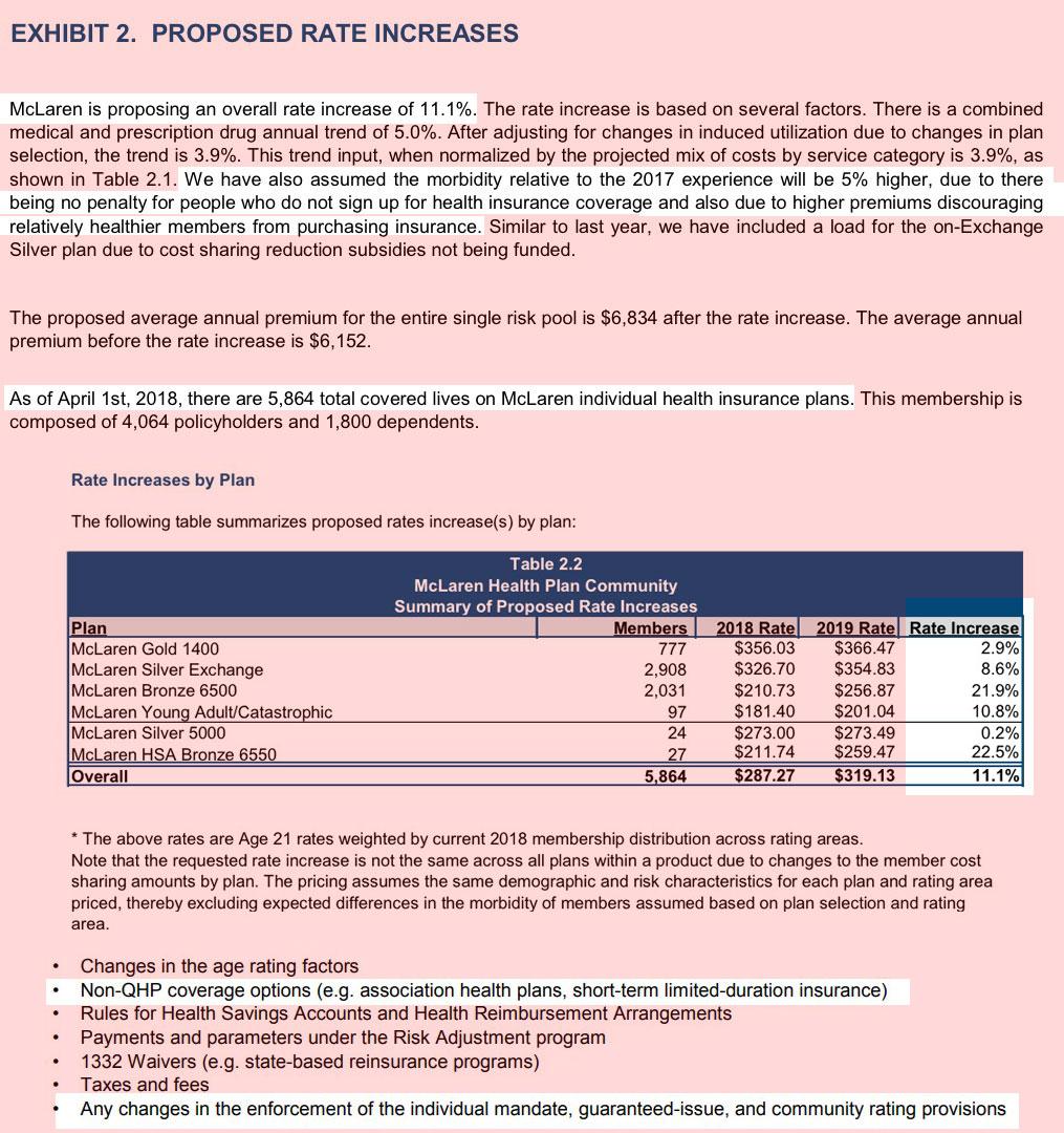 One thing I find very interesting is that Blue Cross, Blue Care Network and Meridian Health Plan, which comprise around 77% of the total individual market, made a point of mentioning the CSR load factor due to last year's sabotage efforts by Donald Trump. In summary: