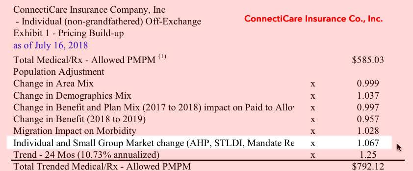 All three of the ConnectiCare filings make it pretty clear that in the case of Connecticut, the carriers are only anticipating a fairly small impact from the GOP's mandate repeal and #ShortAssPlans expansion, tacking on around 2-5% to premiums in 2019.