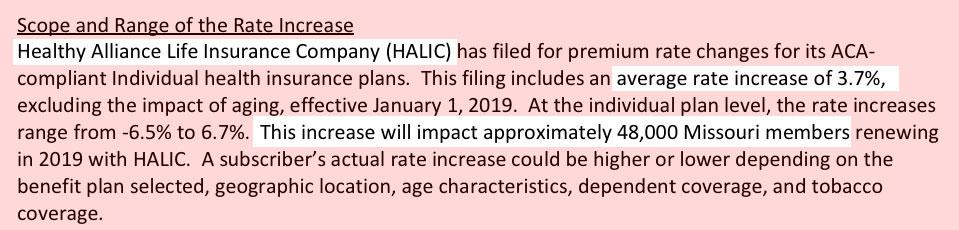 Missouri: Preliminary 2019 #ACA rate changes: 1.9% INCREASE instead of ~10.3% DECREASE w/out #ACASabotage